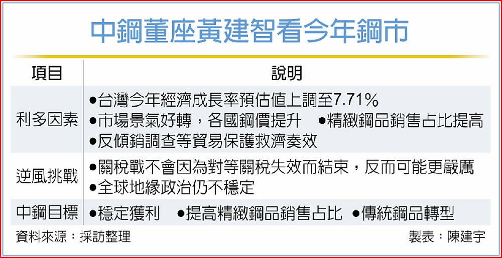 中鋼去年表現不佳,黃建智表示,除地緣政治因素外,美國發起的關稅戰也影響甚大。不過今年鋼市景氣好轉、鋼價回升,訂單狀況也不錯。