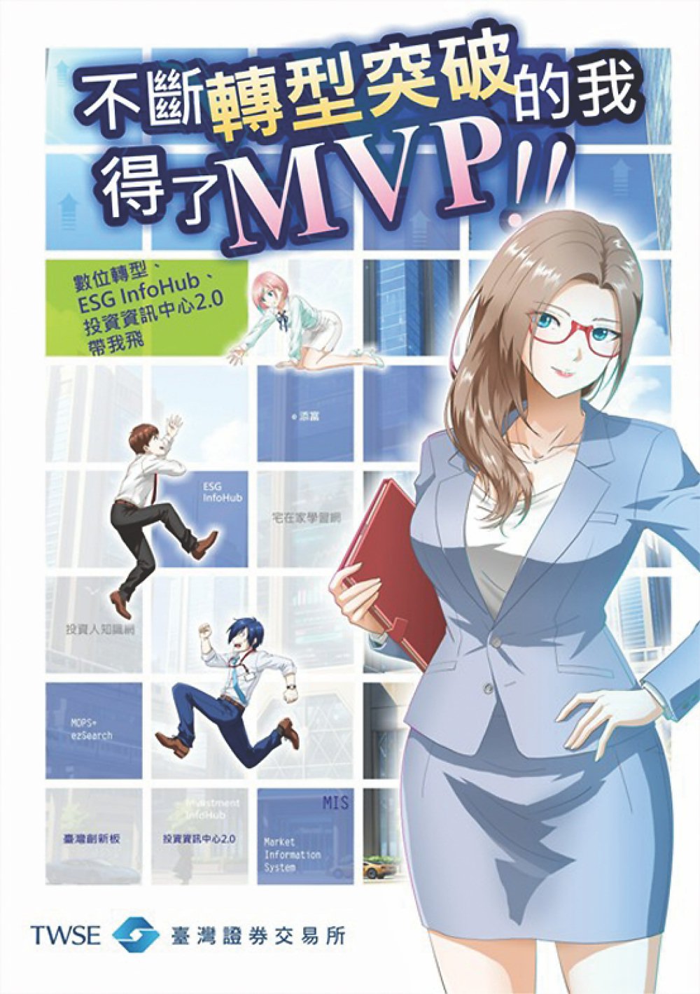 臺灣證券交易所證券知識宣導漫畫,一向深受年輕人族群喜愛的。近日推出最新力作《不斷轉型突破的我得了MVP!!》,證交所表示,此次作品以職場青年為主角,從第一人稱視角出發,描繪主角在面臨工作挑戰與人生轉折之際,透過持續學習與自我精進,逐步突破瓶頸、實現成長的歷程。