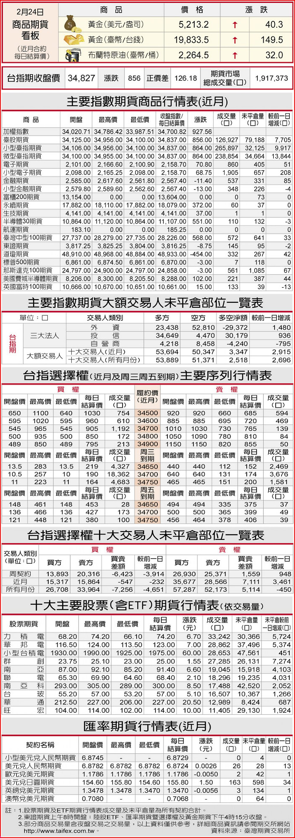 期貨商品行情表