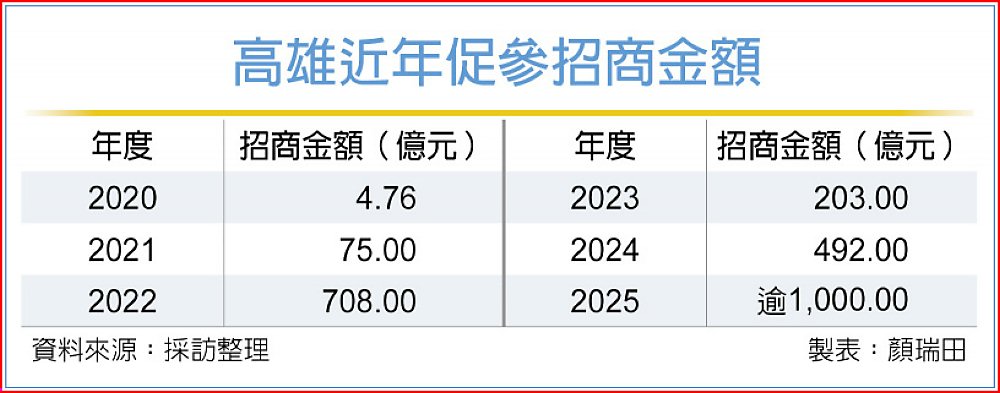 據統計,近6年來高雄促參招商累計總額約2,482億元,光是去年一年就至少1,000億元,不過官方統計的招商金額較保守,得標廠商實際投資金額往往高出官方數字許多。