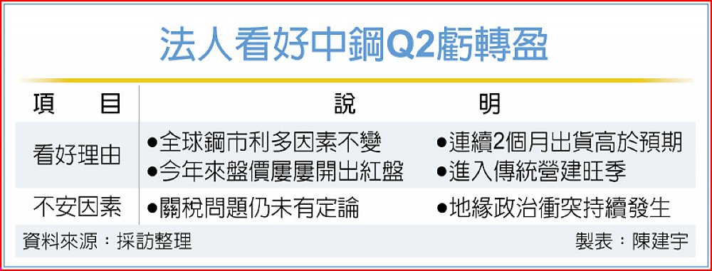 至於中鋼今年何時會出現獲利,法人表示,第一季仍有關稅、地緣政治衝突等因素的影響,目前難以判斷中鋼是否可以轉虧為盈;不過目前市場利多因素不變,且今年來中鋼盤價屢開紅盤,市場人士預估第二季及4月盤價仍會維持漲勢,加上第二季將進入營建旺季,中鋼獲利「盈」面大。