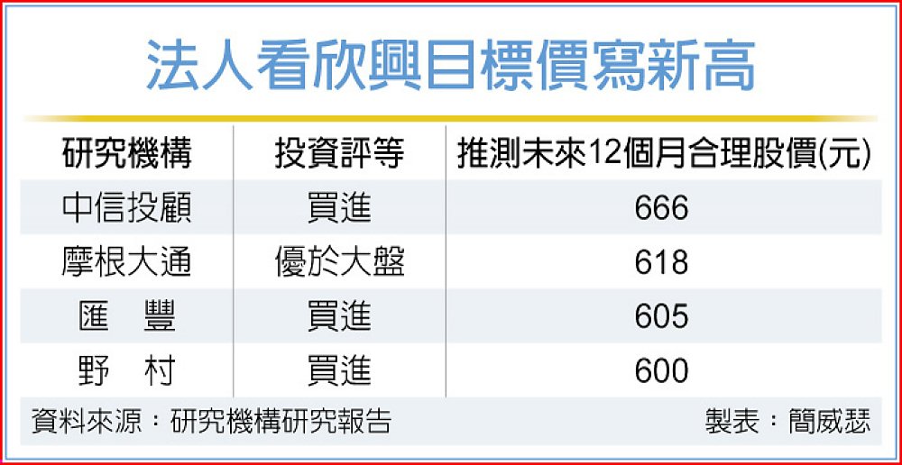 摩根大通證券最新賦予欣興推測合理股價為618元,是外資圈第一家喊上6字頭者。