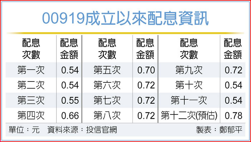 國際地緣政治風險加劇,市場避險情緒增溫,高股息ETF順勢公布好消息。擁有119.93萬名受益人的百萬國民ETF群益台灣精選高息(00919)公布第12次配息期前公告配息金額達0.78元,創下歷史新高,以2日收盤價24.34元來計算,估算年化配息率衝上12.82%,並同步締造連續12季維持10%以上的紀錄。本次除息日為3月17日,參與除息最後買進日為3月16日,4月14日為配息發放日。