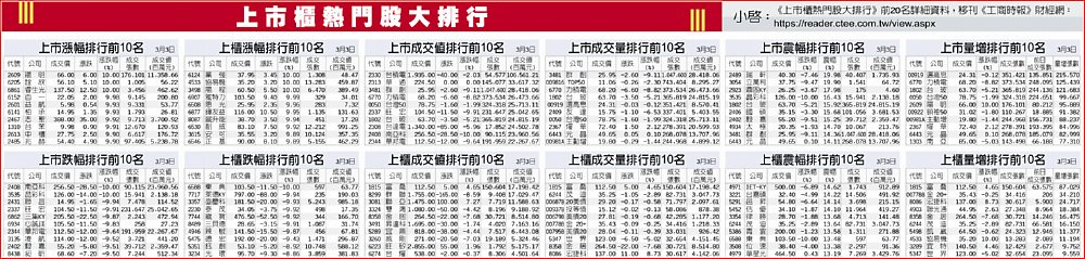 上市櫃熱門股大排行