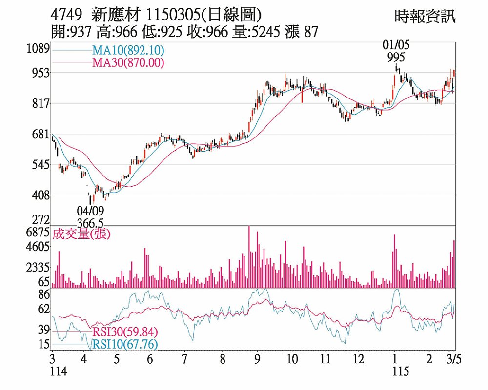 新應材(4749)1150305(日線圖)