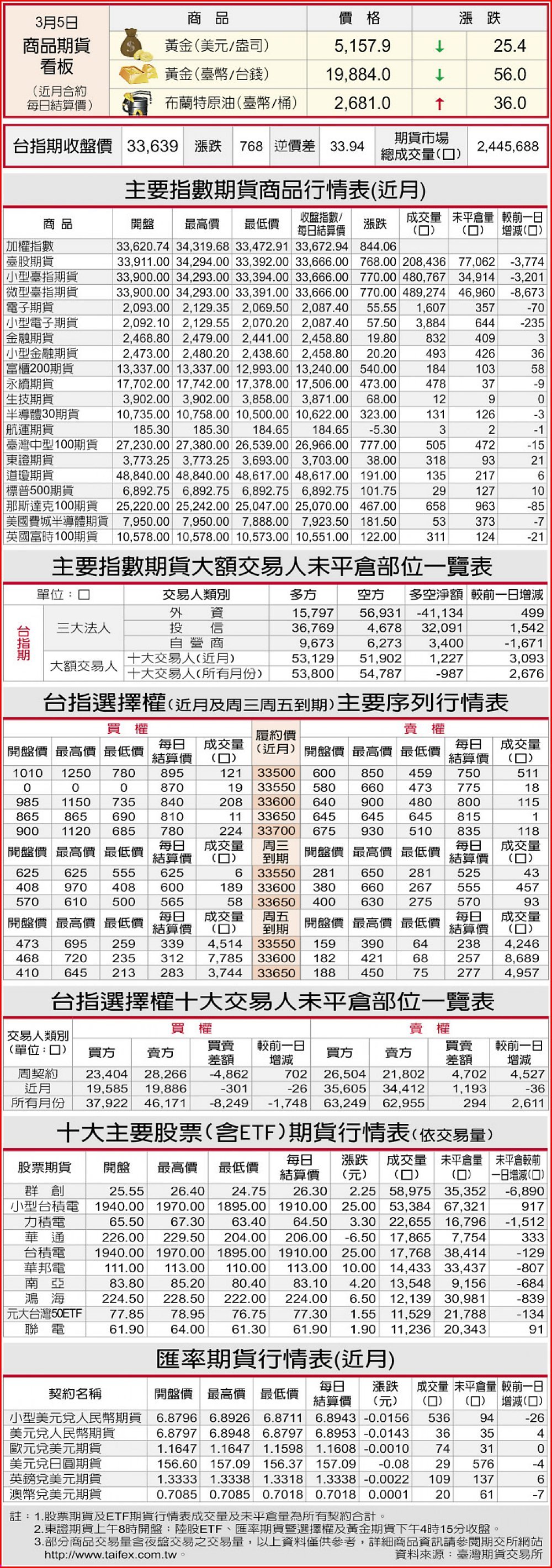 期貨商品行情表
