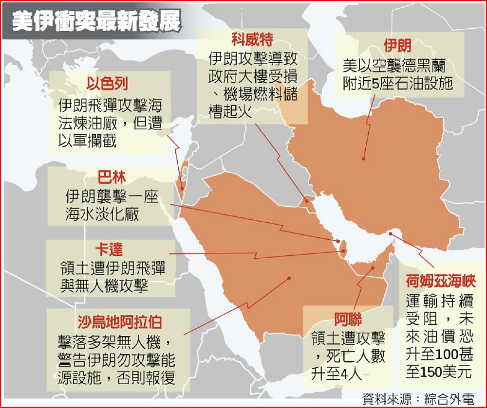 美伊開戰進入第二周,雙方將攻擊目標擴大至石油設施,加上美伊總統持續隔空互嗆,荷姆茲海峽遭封鎖,促使科威特與阿拉伯聯合大公國相繼宣布減產,甚至可能掀起海灣產油國停產潮,恐令國際油價本周延續飆漲態勢。
