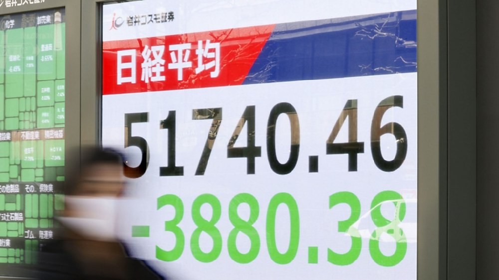 日經225指數9日開盤慘遭血洗,盤中曾崩跌超過4,200點,儘管終場跌勢略為減輕,但仍重摔5.2%,收52,728.72點,創一個月新低紀錄。累計從2月27日高點計算,其目前累跌已超過10%而進入技術修正區。