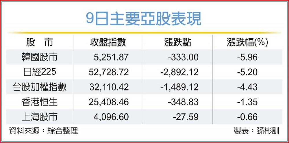 台股9日重挫1,489點創史上第四大跌點,金管會除密切觀察股市波動情形外,更請臺灣證券交易所出面呼籲「國際情勢影響市場波動、台股基本面穩健、投資人理性評估」。