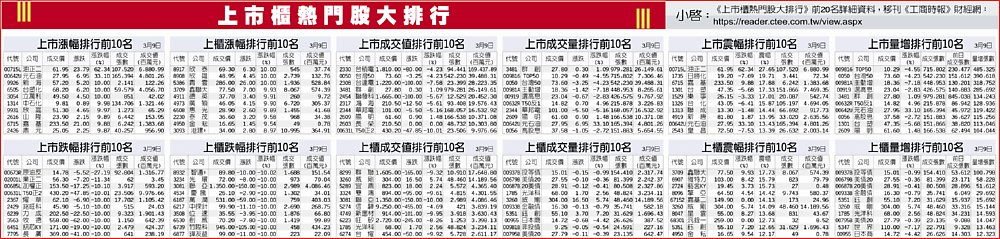上市櫃熱門股大排行