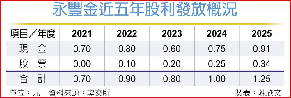 觀察去年永豐金的股利政策,配發現金、股票股利各0.91元、0.34元,市場推估,若以去年現金配發率約52%計算,今年現金股利有望挑戰1元、創史上新高,隨著獲利攀高,2026年整體總股利水準會提升,且將偏重配發現金股利。朱士廷對此則表示,股利配發須經董事會通過,但「可以期待」。