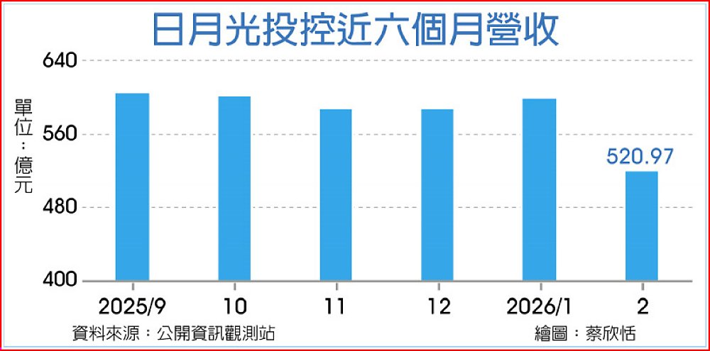日月光2月自結合併營收520.97億元,月減13.2%,年增15.9%;累計前二月合併營收1,120.85億元,年增18.73%。法人認為,在淡季與假期因素干擾下,單月營收仍能繳出雙位數年增,反映AI、高效能運算與先進封裝需求仍具相當支撐力道。