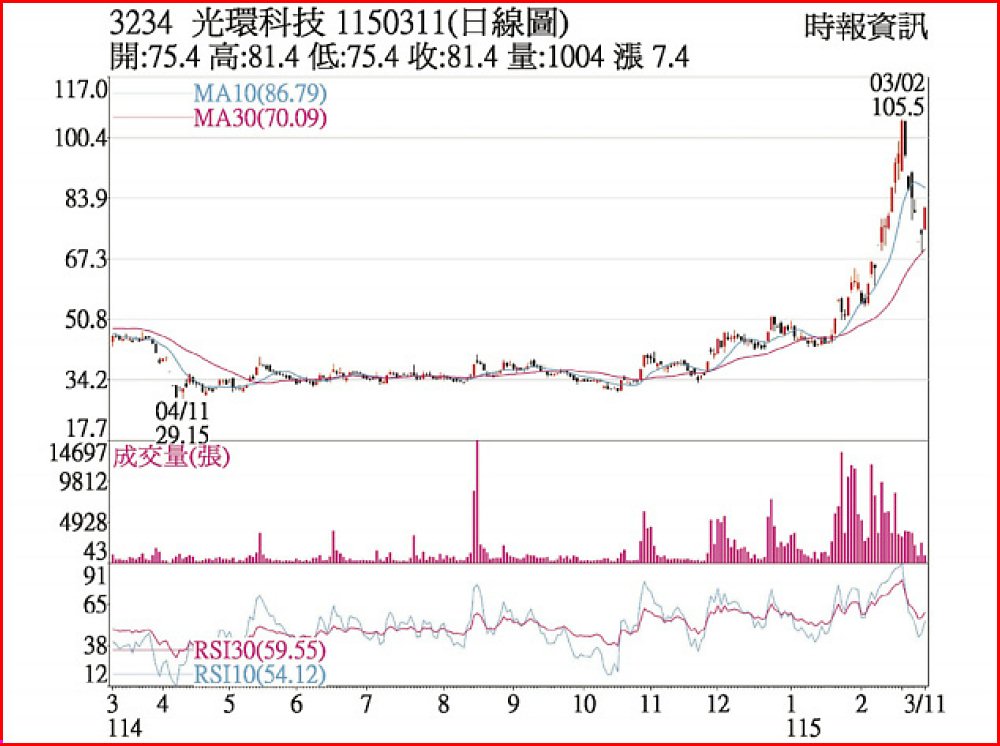 該公司表示,應募對象將以符合資格內部人、關係人及策略性投資人為主。儘管公司財務壓力浮現,但光環11日股價仍強勢攻上漲停,終場收81.4元,技術面並重新站回月線關卡,顯示市場對其後續引資、轉型及營運改善仍有期待。