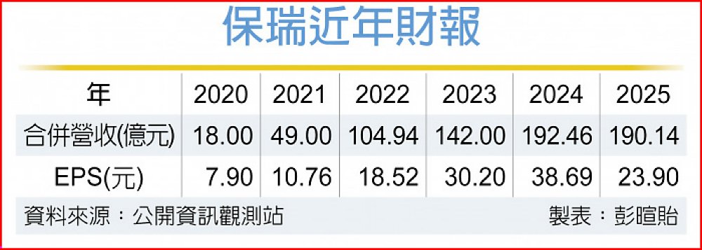 保瑞(6472)去年合併營收190.14億元、年增9.11%,唯受停業部門每股純損11.24元拖累,去年每股稅後純益(EPS)23.9元,年減24.22%,董事會通過擬配發現金股息10元。
